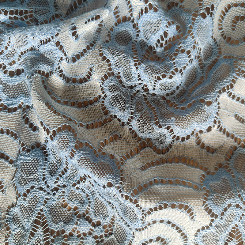 | 13-16 | 95% ナイロン、5% スパンデックス | 130-140GSM | 57/58 | 染色、プリント、スパンコール、クレープなど | ウェディングドレス、イブニングドレス、女性用ランジェリー、手工芸品、おもちゃ装飾、舞台衣装、レース装飾、カーテン、テーブルクロス、コースター、ベッドリネンなど。 | |